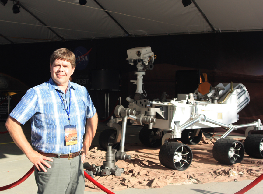 I’m here for several reasons, the main one, of course, being to see the landing along with the people who built the rover in the first place, to be in the best place at the best time to witness history. I also came because I knew the people organizing the conference, people I’ve had the privilege of working with before for the NASA Explorer Schools and NASA/JPL Solar System Educator programs. Coming to JPL is like coming home. It’s been eight years, but walking back on lab brought back all the old excitement. For the people who work here it might be a daily job, but for me it’s the coolest place on the planet. Some people idolize professional athletes or Olympic medalists, movie stars, musicians, or politicians. I’ve met plenty of those sorts of people, and I’m impressed with the persistence and talent it took them to gain their recognition. But for me, the true rock stars are the scientists and engineers who plan, build, test, and fly robots and people into space. And I’m here to meet the ones who are taking on the most extreme sport of all: landing a rover on Mars.