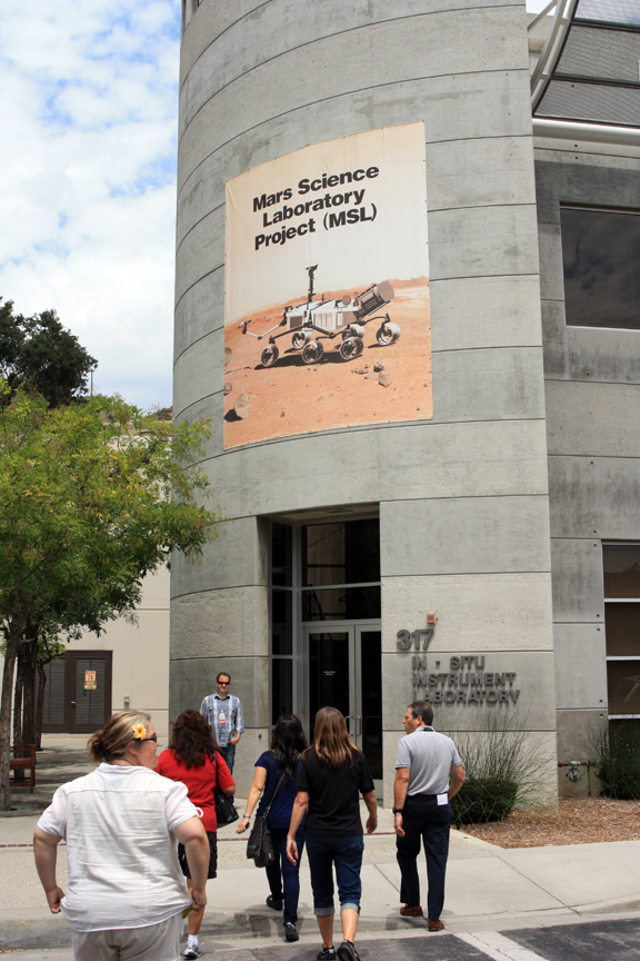 The conference time is split into learning more about the Curiosity rover from the engineers and principal investigators (or PIs – they are the chief scientists on a particular instrument), taking tours of the labs where the rover was built, and practicing activities we can use in our classrooms that are built on Mars exploration and based on national education standards. I’ll talk more about the specific activities in a later post, but for this post I’ll describe the briefings and the tours.