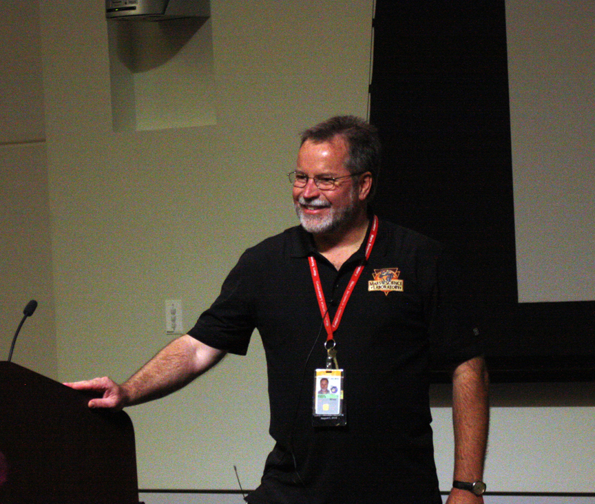 We also had the privilege, as a final keynote speaker, to hear from Leland Melvin, former NFL football player for the Detroit Lions and Dallas Cowboys, two-time space shuttle astronaut, and now Associate Administrator for Education for NASA. He told of his background, the challenges he’s faced, and what it is like to live the dream. His most profound photo was showing a group of shuttle astronauts and ISS occupants who were truly international (Japanese, Russian, American, French) all sharing a meal in the space station.