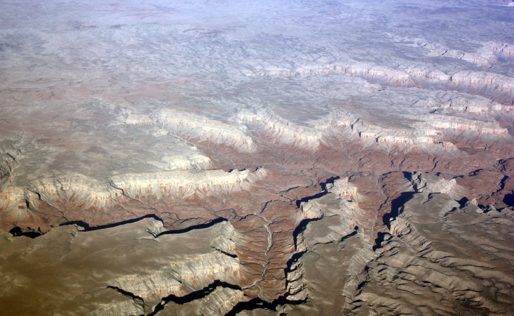 One benefit of this alternate flight was that we flew over Oak City and could see Delta and Deseret well. We flew east of Zion National Park and could see the white layers of Navajo sandstone and the Coral Pink Sand Dunes very well out of our right side seats. We also flew over the western portion of the Grand Canyon.
