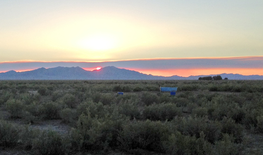 We got there at sunset, which was deep red because of a plume of smoke from a fire in Tule Valley beyond Swasey Peak. Then the mosquitoes started to attack. Having grown up around here, I’m used to them and don’t get welts, although I don’t like them sucking my blood any more than the next person. We had to hide out in the control outhouse until it was dark enough to open the roof. We had a great view of the night sky, dark enough to see the Milky Way. Several satellites orbited overhead, and Mars and Saturn were clearly visible in Virgo to the southwest. Antares blazed in Scorpio, and Vega moved into the zenith as the night progressed.