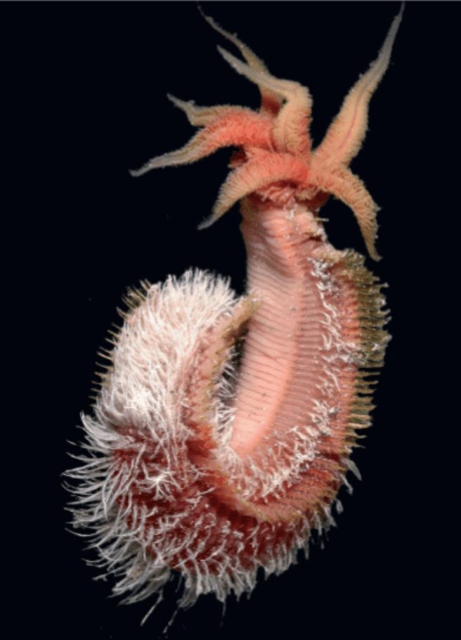 Imagine living comfortably in 140-degree water. Seems impossible, right? Not for the Pompeii worm. Discovered by marine biologist Craig Cary and his colleagues in 1997, the Pompeii worm (scientific name Alvinella pompejana) is a species of deep-sea polychaete worm, or “Bristle Worm.” Pompeii worms can reach up to 13 centimeters in length. They have a feather-shaped head and tentacle-like gills, colored red by hemoglobin. Pompeii worms live in tubes near “black smokers” — hydrothermal vents on the Pacific seabed that emit a substance comparable to black smoke. These worms are extremophiles, organisms that can live comfortably under multiple extreme conditions. For the Pompeii worm, those conditions are extremely high pressure and temperatures.