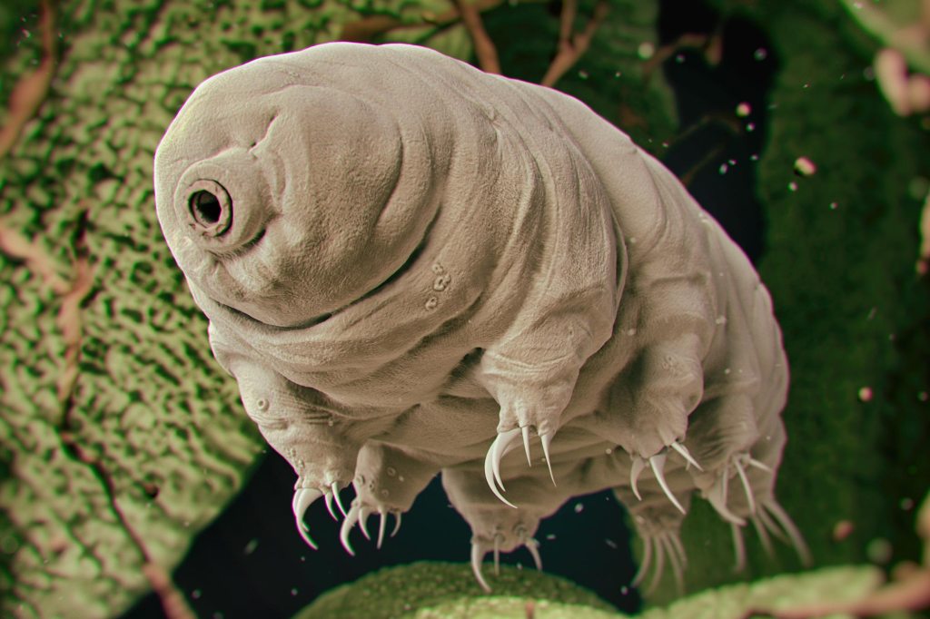 Tardigrades have been nicknamed “Moss Piglets” due to their preference to live in mossy areas with lots of fresh water moisture and their slight resemblance to tiny, grey pigs. Although they prefer wet areas, Tardigrades have been proven to thrive even in desert sand dunes because they keep an extremely thin yet useful layer of water around their bodies at all times. Because they keep themselves moisturized so well, Tardigrades can actively survive without food or water for up to thirty years.