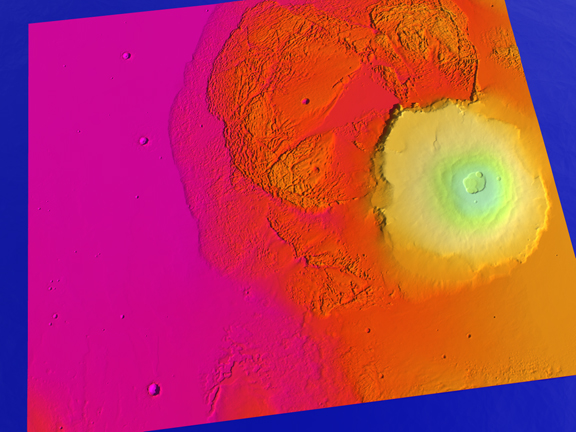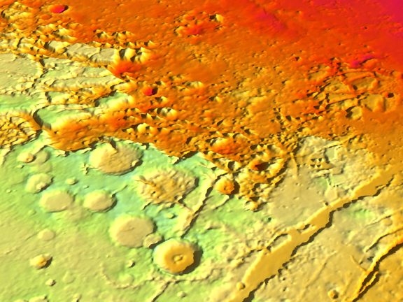 To do this properly, you need to have some large posters of Mars’ surface or be able to project an online map of Mars. I use large Mars MOLA data posters that I picked up at the Educator Resources Center for the Jet Propulsion Laboratory. At the time I was doing workshops for JPL (2002-2004), the ERC was located off site at the old Indian Hills Mall in Pomona but it is now onsite at JPL by appointment only. In addition to the MOLA data posters, they had a box full of Mars Global Surveyor posters from National Geographic. Here is a source for a high resolution MOLA map: