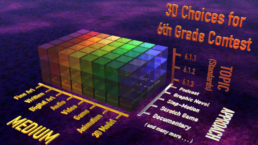 I did have all the science students at that school do several projects during the year, including a nice project on DNA transcription, replication, and translation where the students could choose which type of animation to create. I developed a 3D model of student choice, and working with my dissertation advisor, made choice boards and student choice a central feature of my research. I also instituted the STEAM Showcase program that I have done at other schools, where teams of students choose a science topic from the year and work up a 15-minute mini lesson that includes a script/outline, presentation of information, demonstration or activity, and a handout for further information. They presented their chosen projects to each other for feedback, then made revisions and presented them again to our elementary classes downstairs, then revised again and added the handout and presented for a final time to their parents and our middle school classes at an afternoon Showcase event. We took over five classrooms for five sessions, with 25 presentations altogether, documented everything, and got some good data.