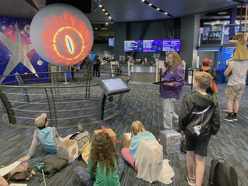 I join two other specialists who have their own niches. We all share going out to schools to make presentations and teach workshops, and we hit every public school in Utah every other year (except charter schools, who are on a three-year rotation). This works out to about 230 school visits per year between the three of us and some part time education staff. We do not go to private schools, and we hit every school district every year, so that some small rural schools see us more often. We also have other responsibilities. Thomas Quayle is over scheduling our part-time presenters and volunteers who do the planetarium dome shows and our Science on a Sphere presentations, help with summer camps, and do much of the daily teaching in the planetarium. Jason Trump is our new education supervisor and is the Assistant Director of Education and Outreach for the PUNCH mission, representing the planetarium in our partnership with Fiske Planetarium in Boulder, CO and several other groups. I help with this including planning for the upcoming annular solar eclipse on Oct. 14. He also is over scheduling and coordinating our school visits and a number of other tasks.