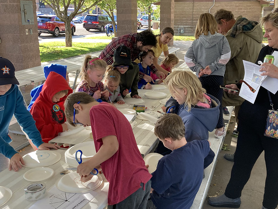 Doing these workshops gave me the idea to contact the librarian at the Delta City Library. The eclipse would be traveling right over the northern portion of Sevier Lake just south of Deseret, then over Kanosh, Elsinore, Loa, Bicknell, Torrey, and Four Corners. We had been preparing for this with our PUNCH outreach team since it would also be going right over Chaco Canyon and Albuquerque, where major events were planned by our team. So we worked up a plan for an event at Delta City Park. I would bring down some PUNCH activities and other items we had been presenting, such as making a model of the Earth-Sun-Moon system that showed the tilt of the moon’s orbit using only a paper plate, scissors, and a marker. The day before the eclipse I put everything together, got copies made, and brought it all home with me.