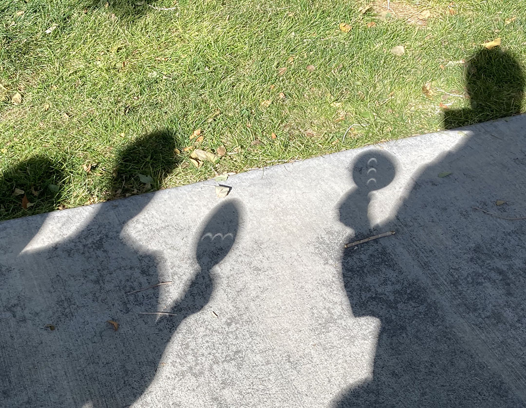 I called as many parents and kids over as I could and explained the eclipse, how to use the PUNCH pinhole projectors (and what to expect), and to hand out bling (extra OSIRIS-REx posters, etc.). About 12 kids stayed and did the Sun-Earth-Moon paper plate model and about five did the sundial activity and about three did the sunscreen painting activity. But it was a chilly morning and most faded back to where their parents were scattered around the park as the eclipse progressed.