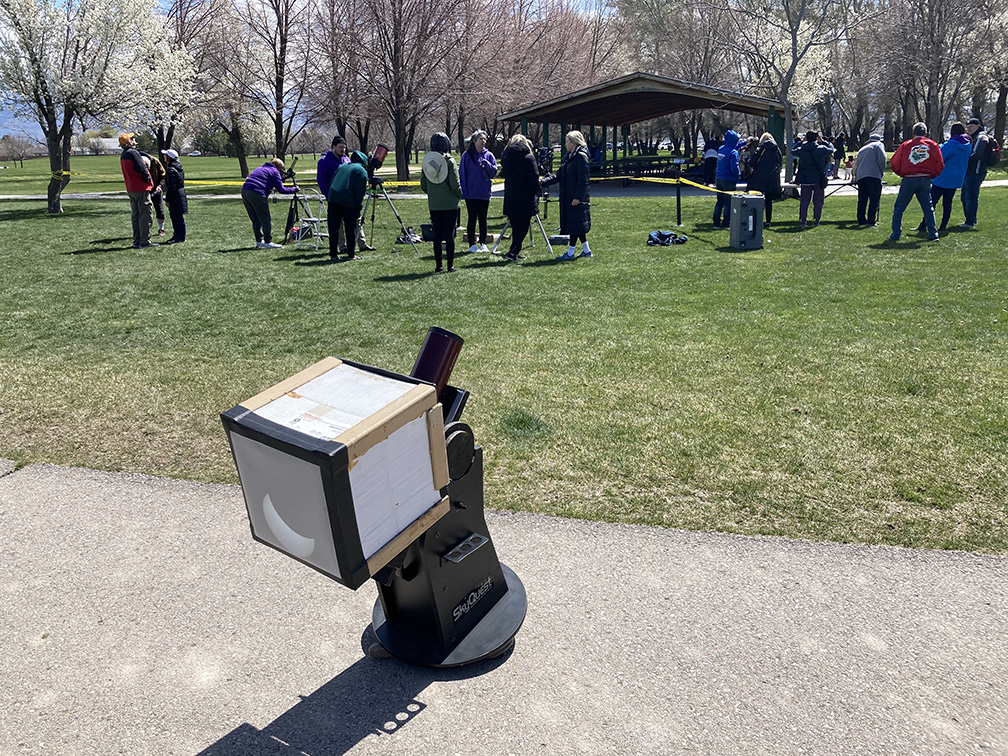 After all of our work getting ready for the annular solar eclipse of Oct. 14, 2023 I knew what to expect for the next eclipse, which would take place about six months later. This one would be total for a path starting near Mazatlan, Mexico and crossing near Dallas, TX and up through Missouri, Ohio, and across to Maine, but for us in Utah, it would only reach about 50% totality.